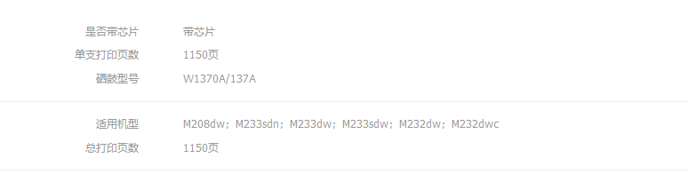 适用机型:惠普 M232dw/dwc M233sdw/sdn M208dw 137A