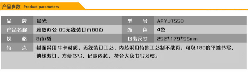 内芯幅面规格:B5