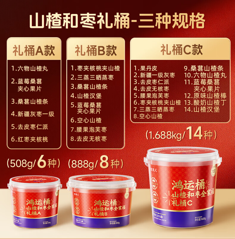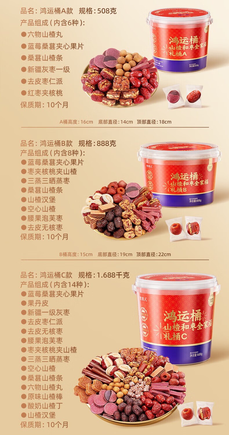 型号:鸿运桶山楂枣礼桶888g