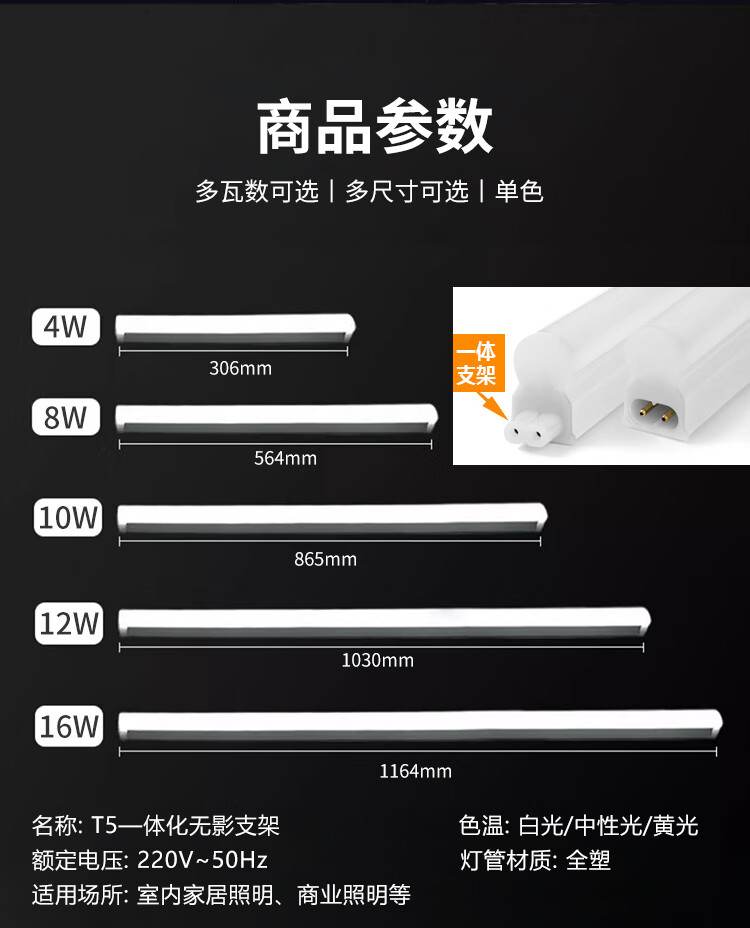 型号:T5无影支架220V8W 30K